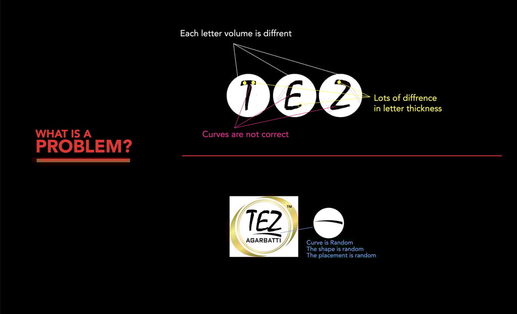 A correction exercise focused on improving the balance, stroke consistency, and structural clarity of the existing TEZ wordmark while retaining its recognizable character.